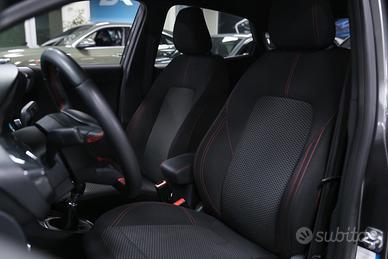 Allestimento ST-Line con fari LED, sensori di parcheggio posteriori (PDC), cerchi in lega da 17”, vetri posteriori e lunotto oscurati, ruotino di scorta, retrovisori esterni ripiegabili elettricamente, fendinebbia, sedili sportivi rivestiti in tessuto, bracciolo anteriore centrale, sensore luci anabbaglianti/abbaglianti, display touch centrale, navigatore, bluetooth, Apple CarPlay e Android Auto, presa USB, base di ricarica wireless smartphone, climatizzatore automatico, start & stop, selettore modalità di guida, cruise control e limitatore di velocità, assistenza al guidatore (rilevatore segnali stradali – assistente anticollisione – sistema mantenimento corsia), volante sportivo multifunzione rivestito in pelle, quadro strumenti digitale, pulsante chiamta d’emergenza, ISOFIX, monitoraggio pressione pneumatici, avviamento tramite pulsante, ecc.