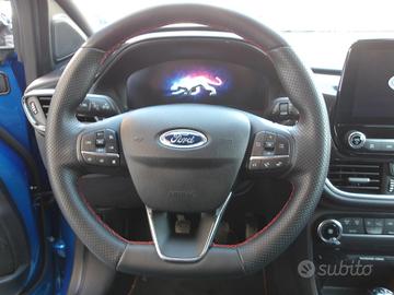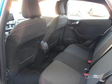 Luci interne ambiente a LED, Sedile guidatore con regolazione manuale a 4 vie, Sedile passeggero con regolazione manuale a 2 vie, Sedili sportivi, Volante ergonomico in pelle regolabile in altezza e profondità, Console Centrale con bracciolo e vano portaoggetti, Tappetini anteriori con doppia impuntura, Sedile guidatore con supporto lombare, Fold Flat System, Ford Megabox, FordPass Connect - Modem 4G, Tecnologia Mild Hybrid, Keyless Start - pulsante di accensione, Kit Riparazione Pneumatici, Digital Cluster - quadro strumenti digitale da 12,3", MyKey - chiave personalizzabile, Alette Parasole Con Illuminazione, Chiusura centralizzata con comando a distanza, Sospensioni sportive, SYNC 3, Cerchi in lega da 17", Start&Stop, Retrovisori elettrici, ripiegabili e riscaldabili in tinta carrozzeria e con indicatori di direzione integrati, Tubo di scarico cromato, Fari anabbaglianti a led, Fari posteriori a LED, Fari fendinebbia anteriori con funzione cornering, Fari abbaglianti automatici,