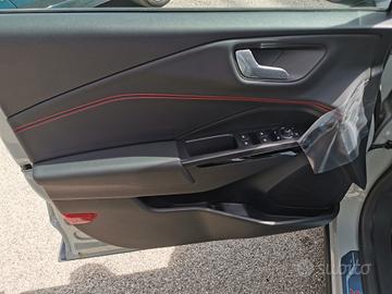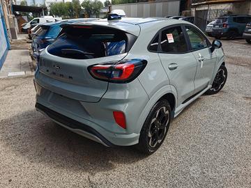 Ford Puma in versione ST-Line X, dotata di clima automatico, sound system con display touch da 12", vivavoce bluetooth SYNC 3 con comandi vocali e chiamata d'emergenza, doppia presa USB, streaming audio integrato, radio DAB, sistema di navigazione, sistema mirroring per interfaccia smartphone, modem 4G, volante multifunzione in pelle, computer di bordo, quadro strumenti digitale, cruise control con limitatore di velocità intelligente, riconoscimento segnali stradali, controllo elettronico della carreggiata, frenata d'emergenza assistita, sensore luci, ricarica wireless per smartphone, retrovisori esterni regolabili ed abbattibili elettricamente, alzacristalli posteriori elettrici, bracciolo anteriore, sedile posteriore sdoppiato 60/40 con poggiatesta, vano bagagli con doppio fondo, sensori di parcheggio anteriori e posteriori,bagagliaio elettrico, telecamera posteriore, vetri posteriori oscurati, cerchi in lega diamantati da 18", fendinebbia anteriori con funzione cornering, fari e luci diurne a led.