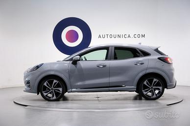 FORD Puma 1.0 EcoBoost Hybrid 125 CV S&S Aut. ST-Line X unisce lo spirito dinamico di un crossover compatto alla tecnologia ibrida più avanzata, garantendo prestazioni brillanti con consumi ridotti. Gli interni in pelle, il sistema di navigazione integrato, il touch screen e il sound system offrono comfort e connettività, mentre la regolazione elettrica dei sedili e il supporto lombare rendono ogni viaggio confortevole.La sicurezza è completa: ABS, airbag multipli, ESP, controllo trazione, Isofix e sensori di parcheggio anteriori e posteriori assicurano protezione totale, supportata da sistemi come l'Adaptive Cruise Control, il monitoraggio della co