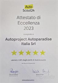 AUTOPROJECT S.R.L. VI PROPONE : ''IL PREZZO INDICATO SOTTO FORMULA DI ATTIVAZIONE FINANZIAMENTO''SI POSSONO TROVARE MAGGIORI FOTO IN ALTA DEFINIZIONE SUL NOSTRO SITO WWW.AUTOPROJECT.IT ***************************************1)ACCETTIAMO PERMUTE: sul nostro sito www.autoproject.it puoi richiedere un valutazione del tuo usato in modo semplice e preciso.Oppure inviando delle foto dettagliate con tutte le info della vostra vettura al numero WhatsApp .In giornata avrete la nostra migliore valutazione.2) RITIRO DEL VEICOLO IN 1 ORA: Passaggio immediato presso la nostra sede - Servizio ritiro clienti da stazione ferroviaria di Parma3) POSSIBILITA' DI PROVA SU STRADA 4) POSSIBILITA' DI FAR VISIONARE L'AUTO DA UNO SPECIALISTA DI VOSTRA FIDUCIA 5)Tutti i nostri veicolo sono visibili SU APPUNTAMENTO6) POSSIBILITA' DI FINANZIAMENTI FLESSIBILI E PERSONALIZZATI PER OGNI ESIGENZA 7) PER I CLIENTI FUORI CITTA/REGIONE OFFRIAMO IL SERVIZIO DI FOTO E VIDEO DETTAGLIATE DELL'AUTOVETTURA,NEL PREZZO INDICATO NON E' INCLUSO IL PASSAGGIO DI PROPRIETA', GARANZIA 12 MESI '''GARANZIA EUROPA''' COMPLETA DI :TRAINO GRATUITO,AUTO SOSTITUTIVA,NUMERO VERDE ATTIVO 24 ORE SU 24MIGLIAIA DI OFFICINA CONVENZIONATE IN TUTTA ITALIA ED EUROPA,500€ DA SOTTOSCRIVERE AL MOMENTO DELL'ACQUISTO. PER MAGGIORI INFO CONTATTARE I RESPONSABILI VENDITE: +39 3295996062EMAIL info@autoproject.it La dotazione tecnica e gli optionals potrebbero in alcuni casi differire dall'effettivo equipaggiamento del veicolo. A causa della difformità dei dati pubblicati dai vari portali, AUTOPROJECT SRL, declina ogni responsabilità per eventuali involontarie incongruenze, che non rappresentano in ogni caso un impegno contrattuale