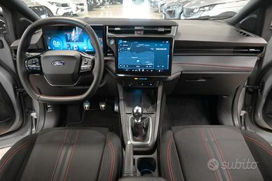 ABS - ActiveGrill Shutter - Airbag a tendina - Airbag frontale/laterale lato guidatore epasseggero - Badge ST-Line - Cambio manuale a 6 rapporti - Cerchi in lega17" ST-Line - Chiave con transponder - Chiusura centralizzata - Climatizzatorea controllo automatico (EATC) - Console centrale con bracciolo scorrevole evano portaoggetti - Cruise control con limitatore di velocità - Digital Cluster:quadro strumenti completamente digitale - Eco Coach - Emergency Brake Assistant- EBA - ESC (Controllo elettronico della stabilità) - Fari anteriorilivellabili - Fari posteriori a LED - Fari proiettori a LED con luci diurne a LED edabbaglianti automatici - Griglia frontale ST-Line Design - Hill Holder - HillStart (Assistenza alla partenza in salita) - Immobilizzatore - Indicatoretemperatura esterna - Integrated Vehicle Dynamics (IVD) - Integrazione consmartphone Apple CarPlay e Android Auto - Keyless: apertura/accensione senzachiave - Lane Keeping Aid - Modalità di guida selezionabili - Monitoraggioattenzione conducente - Navigatore satellitare - Pedaliera in alluminio - PreCollision Assist - Pretensionatore cinture - Retrovisori elettrici riscaldabili,regolabili e reclinabili elettricamente con indicatore di direzione integrato elogo di benvenuto - Riconoscimento pedone - Sedile guida con regolazionelombare - Sedile guida con regolazione manuale a 4 vie (inclusa regolazionealtezza) - Sedile passeggero con regolazione manuale a 2 vie - Sedili intessuto nero con impunture rosse - Sensori di parcheggio posteriori -Servosterzo - Soglie battitacco alluminio - Sound system con 6 altoparlanti - Specchiettoretrovisore auto oscurante - Speed Sign Recognition: riconoscimento limiti divelocità - SYNC 4 con Touchscreen da 12", bluetooth streaming e comandi alvolante - Tergicristalli con sensore pioggia - Telecamera posteriore perassistenza in retromarci