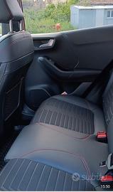Ford Puma 1.0 EcoBoost Hybrid ST-Line X (2023) con tetto panoramico è uncrossover sportivo con motore 125 CV e cambio manuale. Caratteristiche Principali ST-Line X 2023 (con Tetto Panoramico): Motore:1.0 EcoBoost Hybrid 125 CV Tetto:Apribile elettricamente, panoramico, con tendina parasole. Esterni:Body kit ST-Line, fari LED, vetri oscurati, cerchi in lega da 18". Interni:Sedili sportivi parzialmente in pelle con cuciture rosse, volante in pelle, cruscotto digitale. Tecnologia:SYNC 3 con touchscreen da 8", Apple CarPlay/Android Auto, FordPass. Comfort:Clima automatico, sensori parcheggio e telecamera. Bagagliaio:Ampio, con "MegaBox" (spazio aggiuntivo lavabile). Garanzia rimasta altri 4 anni