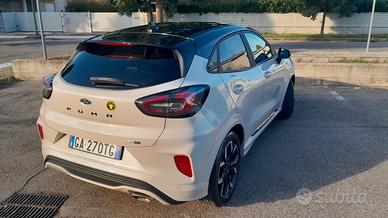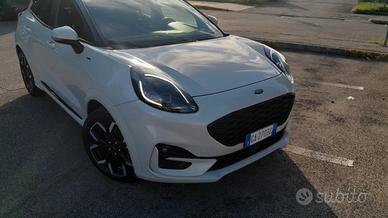 vendesi Ford puma st line, febbraio 2020, 56000 km, 7 anni garanzia, bicolore, radio b&o, sempre garage, tessuto/pelle, sensori posteriori, assistenza guida, unico proprietario, revisione febbraio 2026, bollo pagato, possibilità visionarla o Roma o Forlì, portellone elettrico, vetri scuri, controllo corsia, lettura segnali stradali, apertura senza chiavi.