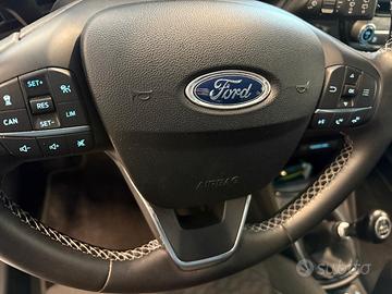 ACCESSORI: cerchi in lega 17'' a 10 razze bicolor, vetri post.ri oscurati, spoyler post.re, fari fendinebbia, luci diurne e proiettori direzionali a Full Led (con H.B.A.), rilevatore ostacoli ant.re e post.re (con Park Assist), retrov. esterni regolab. e ripieg. elettr., climatizzatore, modulo mp3 con Usb, display Touchscreen TFT 8'' (Ford SYNC3 con radio DAB, sistema di navigaz. satellit., connettività per smartphone e telecam. post.re), wireless smartphone charging, sensore luci, volante in pelle multif., adaptive cruise control (con limit. velocità), airbags, abs, ebd, esp tcs, hla, Lane Keeping-System (Lane Departure Warning Lane Keeping Aid), pre-collision Assist, Traffic sign. recognit., BLIS, Driver Alert, selettore modalità di guida, 4 vetri elettr., sedili in tessuto titanium..
