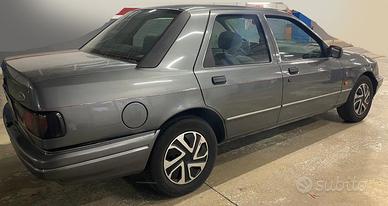 Ford Sierra 82.600 km, 2.000 cc - 87 KW - 118 CV ,iniezione elettronica, 4 freni a disco, allestimento Ghia, libretto cartaceo originale, targa Roma originale, tettuccio apribile, 4 vetri elettrici, chiusura centralizzata (tre chiavi), servosterzo, specchietti elettrici, sensori di parcheggio posteriori, apertura baule e sportello benzina dall'interno, contagiri, bialbero a camme in testa, trazione posteriore, 5 cerchi in lega del tipo in fotografia, orologio e datario, entrambi gli specchiatti in più come eventuali ricambi, Acquistata nel 2020 da un anziano unico proprietario, ASI con CRS, ruota di scorta. Messa in moto ogni settimana, batteria MAI andata giù.