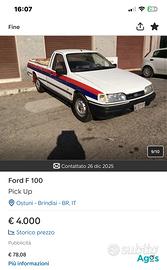 Vendesi x poco utilizzo ford sierra pick-up 1800 td California p 100 ,alcuni particolari: motore completamente rigenerato, frizione completa disco spingi disco e volano ,pompa trasporta gasolio ,batteria, tutti i filtri interno completamente rivisto non stravolto ,sedili della racing sport in pelle e tessuto volante in legno, pomello del cambio in legno, paraurti anteriore ,quello posteriore fatto su misura ,luci supplementari, gomme km zero, cassone, completamente foderato e riverniciato, trapezi pastiglie impianto elettrico completamente rivisto con interruttori spostati in altra zona radio CarPlay, con Bluetooth viva voce e telecamera posteriore , pannelli delle porte rifatti completamente foderati in alcantara, ecc ecc ,vettura in vendita, non in Saldo se la richiesta vi sembra esagerata, passate tranquillamente oltre, bollo pagato la vettura sarà venduta con collaudo in corso di validità è pronta all’uso tutti i liquidi sono stati sostituiti. Ho ancora qualche piccolo accorgimento da sistemare, ma la vettura verrà consegnata in ordine non scambio assolutamente con nulla non fate proposte che non verranno accettate, soltanto dopo averla vista e provata, si può procedere all’acquisto con scrittura privata, pagamento con bonifico bancario antecedente alla voltura. Non pretendete accessori come ABS controllo di trazione o altro. È una vettura del 1990 non è provvisto trazione posteriore cambio fronte marcia non sono state effettuate assolutamente nessuna modifiche strutturali al telaio cassone lungo 2,10 m con sponda chiusa portata 9 quintali uso proprio esente Iva insieme do ancora qualche accessorio che mi è rimasto tipo turbo pompa il gasolio coppa dell’olio e cose varie per informazione rivolgersi qui e astenersi gentilmente perditempo e senza soldi grazie per l’attenzione per fare un confronto osservate quella bianca su scout 24… la richiesta