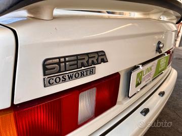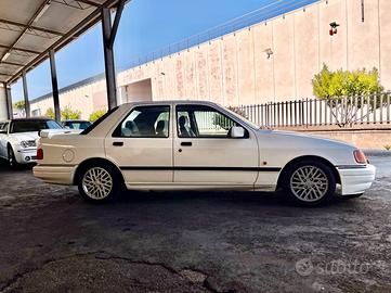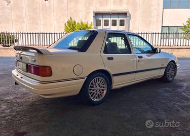 Ford Sierra Cosworth 2.0 (200 CV - 147 kW) immatricolata nel 1988, con carrozzeria bianca e interni Recaro in alcantara grigia, perfettamente conservata.