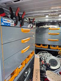Ha i cerchi in lega ,ha il rivestimento laterale completo, ha le scaffalature dx sx ,centrale della storevan.