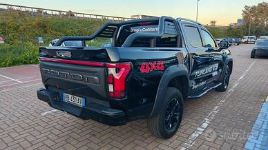 36 mesi di garanzia o 100.000 Km - 4 finestrini elettrici - 4 freni a disco - 4 porte USB - Accendisigari - Accensione automatica fari - Accensione automatica tergicristallo - Airbag a tendina - Airbag laterali - Antifurto - Avviamento a pulsante - Bluetooth - Bracciolo portaoggetti - Cambio automatico - Cerchi in lega - Chiusura automatica delle porte - Chiusura centralizzata con smart key - Climatizzatore elettronico - Comandi vocali (Inglese / Spagnolo) - Cruise Control - Differenziale posteriore bloccante - Doppio Airbag anteriore - ESP (ABS+EBD+BA+HDC+TCD+HHC) - Fari anteriori a LED - Fari fendinebbia anteriori e posteriori - Fari posteriori a LED - Freno a mano elettronico (EPB) - Immobilizer - Impianto audio 6 casse - Indicatori di direzione a LED - Infotainment con display 14,6" - Interconnessione telefoni cellulari Carbit + CarPlay - Interni in Ecopelle - Livellamento automatico fari - Luci diurne a LED - Pedana posteriore - Pedane laterali - Posacenere - Postazione di ricarica wireless - Quadro strumenti con display a colori da 12.3" - Rivestimento antigraffio del cassone - Ruota di scorta 26