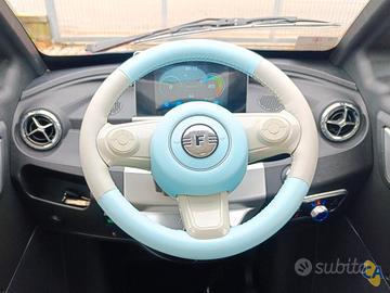 La minicar senza patente FREEDOM SETTE è realizzata con telaio in acciaio e carenatura in ABS; il motore elettrico da 1.200 W può raggiungere una velocità ma