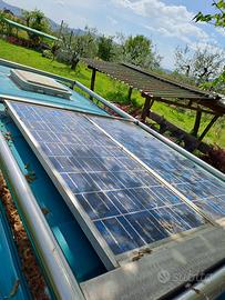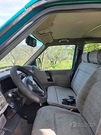 Volkswagen T4 semicamperizzato. Anno immatricolazione 1994 Km 100mila Omologato 9 posti Pannelli solari Frigorifero Inverter 220 Oblò Monitor Riscaldamento Webasto Finestrini elettrici Servo sterso Doccia nel portellone posteriore Serbatoio per l'acqua da 70 litri Tappezzeria interna abbastanza in buono stato, c'è solo due segni di usura nel seggiolino davanti. Carrozzeria esterna in buono stato Testata del motore revisionata e distribuzione fatta. Il sedile dietro si stende totalmente diventando un letto spazioso. Immatricolato autovettura. Auto d'epoca e quindi assicurazione e bollo ridotti. Diesel 9.000 euro trattabili.