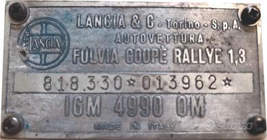 Lancia Rally 1300 cc del 1968, bianco Saratoga, prima serie 4 marce leva lunga, motore revisionato ha 1500 km. , porte e cofani in alluminio, pompa freni e le 4 pinze appena revisionate, cambio revisionato, 4 ammortizzatori nuovi, scarico tutto nuovo, cerchi in lega Cromodora con gomme nuove, libretto storico a pagine e libretto nuovo, targhe nere, doppie chiavi. Provvista di impianto per tripmaster e mediometro. Posso consegnarla fino a 200 km. gratuitamente. Info in privato su Messenger.