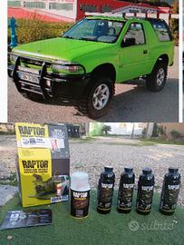 Regalo vernice "antigraffio Raptor" colore verde da applicare con rullo piccolo anche da casa.