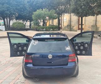 Vendo golf 4 150 cv in buone condizioni la machina montate gomme nuove frizione fatta nuova e da verniciare solo parailurti anteriore e cofano qualche graffio monta inpianto da gara .. 6 wufer da 20 .3 driver a porta 2 tek gladiator di cui 1 a porta.1 sub ibrido da 5000 rms spinto da un sundigital 8000 2 din alpine 4 batteria gel nuove no perditempo no affaristi prezzo non trattabile valuto scanbio con audi a 3 o a 5