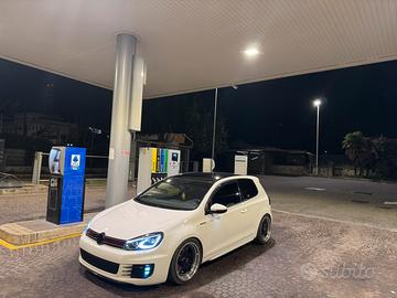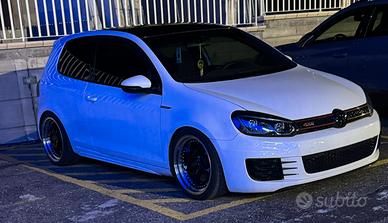 Golf 6 GTI eseguiti tutti i lavori di normale manutenzione,motore in perfette condizioni,distribuzione e tagliando eseguiti da 3mila km con pezzi originali e documenti da foto,tutte le lavorazioni sono documentate con foto e date olio 5w50 motul,non ha nessun tipo di problema,carrozzeria perfetta trattata con passione,viene usata solo nei fine settimana, sono stati effettuati vari upgrade Elettronica Aumento di potenza,rev limit,v-max aperta,sonde off,burble in rilascio e pops and bang su attivazione a 4.3 mila giri Carrozzeria Tetto nero , vetri oscurati ant.e post. , fari stile 8.5 full led, cornice faretti stile 7.5 fanali posteriori neri full led,diffusore posteriore,terminali da 100, l’intera carrozzeria è stata trattata con un trattamento ceramico nanotech Motore Upgrade bobine audi R8 e candele al platino Intercooler maggiorato Aspirazione completa BMC OTA specifica in carbonio Scarico diretto artigianale completo in acciaio Downpipe decat,centrale,e finali con silenziatori Assetto Kit completo powerfix su silentblock Biellette regolabili Assetto completo regolabile a ghiera vogtland Impianto frenante brembo xtraline dischi baffati e forati pastiglie ebc yellow Cerchi porsche replica stile cup 3 8.5x18 et 40 con gomme nankang ns2r semislick