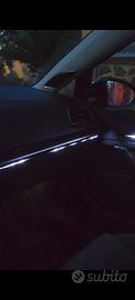 Interni: Volante in carbonio forgiato con inserti blu e indicatori LED RPM; illuminazione ambiente a LED su portiere (ant/post), tunnel centrale e plancia; strumentazione cluster con lancette e retroilluminazione blu.