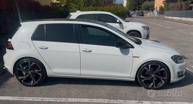 Volkswagen Golf 7 Allestimento bluemotion 1.6 TDI 105 CV Anno 2013 full optional! Cambio automatico 7 marce. Tenuta da amatore come in foto perfetta in tutto lavata sempre a mano.. Stage 1 dowpipe e scarico diretto 150cv apenna tagliandata revisionata distribuzione fatta con fattura perfetta in tutto esteticamente cerchi da 19 omologati rs6 gomme apenna montante nuove asseto ghiera regolabile fatto vetri neri tetto nero fari posteriore 7.5 Difusore posteriore nero lucido gti spoiler posteriore baule nero lucido per info contatami al 3791419167