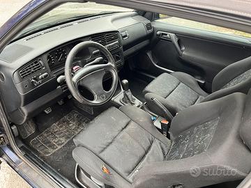 Vendo per esubero mezzi (avuta in permuta per un’altra auto ma preferisco liberare lo spazio), Golf mk3 Cabrio 1.6 101cv benzina manuale, 160000km, bollo pagato a gennaio e dal 2027 non lo paga piu, meccanica ok, tagliandata, assetto a ghiera, cerchi simil bbs, musata Vento, carrozzeria accettabile, capote con qualche difetto ma tiene, meccanismo elettrico ma da revisionare, interni sani tranne sedile guida usurato e qualche dettaglio da rivedere tipo la plastica colonna sterzo rotta.
