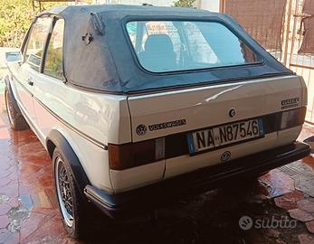 Vendo golf cabrio anno 1986,impianto a gas da rinnovare,sull auto sono presenti al momento ,vetri elettrici,servosterzo e chiusure centralizzate tutto funzionante ,auto ferma da 4 anni ,appena uscita dal garage ,partita in pochi minuti .meccanica ottimale ,carrozzeria come in foto in ottimo stato ,motore ottimo . Ci vorrebbe una batteria nuova e cambio olio. Vendo per passaggio ad auto differente degli stessi anni. Non accetto permute.colore bianco perla ,cerchi in lega Porsche,interni recaro.copricapotte nuova ,capotte esterna da sostituire o sistemare .preferibile contatto telefonico .prezzo poco trattabile .
