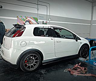 ciao a tutti vendo grande punto Abarth del 2009. l'auto monta: Turbo TD 04 XTR 255, Skat bendato, Linea scarico completa 60mm, Centrale libero, Terminale inoxcar omologato con foglio, Kit pierburg tmap tboost SS, Aspirazione diretta alta 60 mm, Intercooler maggiorato airtec, Iniettori maggiorati 620cc, Collettori scarico SS, Pop off bonalume meccanica, Manometro turbo Road italia, Kit decanter, Assetto bilstein B12 prokit, Mappa 100 ottani serial tuning pesaro 280cv 360 nm, Girotubi intercooler completo tbf, Bobine mopar, Camber anteriore, Pastiglie ferodo ds2500 ant, Tubi freno in treccia ant e post, Olio motore Mobil 5w50, Olio cambio bardahl mtf 75w90 , Olio freni motul rbf 600, Kit supporti motore powerflex gialli, Barre rinforzo sottoscocca, Cerchi jr11 da 17 estivi, Cerchi originali 17 invernali, Kit blindature centralina e obd in acciaio, Braccetti anteriori frap rinforzati.