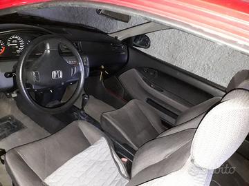 Honda civic 1.3 ex 16 v anno 1995 km 91000 circa, cambio manuale 5 marce, clima, 5 posti , servosterzo, chiusura centralizzata, alzacristalli elettrici, specchietti regolabili elettricamente, antifurto, predisposta per autoradio gia altoparlanti e cavi cablaggio, gomme pirelli, paraurti anteriore da sistemare o sostituire, freccia ant sinistra da sistemare ma funzionante. Interni simili al nuovo, Motore pulito come si vede da foto. A 88000 km cambiata cinghia distribuzione, tagliando completo (oltre candele, filtro aria, ecc.) Auto ferma in garace da qualche anno. Già requisiti per auto d'epoca (oltre 30 anni) e sconto su tassa proprietà e assicurazione rca .Auto già predisposta per andare in paese U.E. oppure ritargare in Italia. L'auto si trova in prov di Messina. Il passaggio di proprietà a carico dell'acquirente.