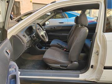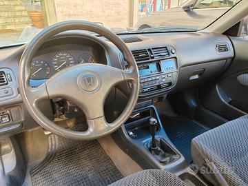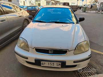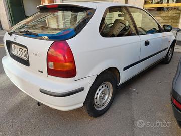 Honda Civic 1.4i 16V, benzina 75cv, grande affidabilità, bassi consumi, guida scattante, in buone condizioni di meccanica e carrozzeria, interni in ottimo stato, non consumati e senza strappi. Aria condizionata. Molte parti nuove già montate + paraurti nuovi ancora imballati. Libretto di circolazione originale. Tagliando fatto un mese fa. Fondi e sottoscocca perfetti. Gomme al 70%. Perfetta per neopatentati. Usata giornalmente. Qualsiasi prova o visione del Vs meccanico. Optional: Aria condizionata Vetri elettrici Specchietti elettrici Chiusura centralizzata Fari orientabili Sedile posteriore sdoppiabile Autoradio Kit attrezzi e crik originali Doppie chiavi Documenti e libretti originali Immatricolabile ASI Auto storica dal prossimo anno Prezzo inferiore al valore di mercato, poco trattabile Niente permute
