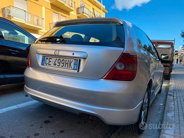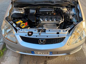 Honda Civic 1.6 VTech dell 2003, due proprietà, io la possiedo dal 2009, manutenzione eseguita con regolarita ogni 10000 km, sempre olio Bardhall, gomme Bridgestone Turanza al 50%, distribusione eseguita, qualsiasi prova da qualsiasi meccanico