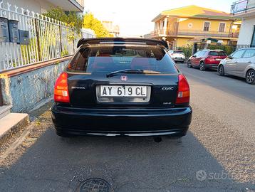Vendo Honda Civic Ej9 versione 25th Anniversary del 1998, colorazione Nero Perlato originale con 280000 km con Kit estetico EK9 Type R Prefacelift includendo: Badge rossi fronte e retro, Paraurti e Lip EK9, Spoiler, Sedili rossi e tappetini adatti al modello, Sterzo originale Ek9 dal Giappone, cuffia per cambio nuova e pomello simile all'EK9. Motore completamente originale con tagliandi e revisioni regolari. Filtro aria a pannello K&N e terminale finale Simoni Racing e cerchi MAK da 16". Fornisco anche cerchi originali della Civic da 14" e Sticker laterali e cofano posteriore della EK9. Prezzo trattabile