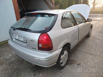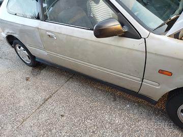 attenzione leggere bene! Vendo Honda Civic EJ9 1.4 Is 90cv ha avuto un incidente anni fa ed è stata rimessa in sesto alla buona ,è stata cambiata la portiera e parafango anteriore destro però il resto è da fare. macchina comunque perfettamente marciante a cui sono stati fatti i seguenti lavori : tagliando completo , cuffie semiassi nuove anche quelle lato cambio , testine sterzo con snodi assiali , gomme fresche ,dischi e pastiglie nuovi alcuni tubi acqua nuovi e poi poco tempo fa gli erano state fatte cinghia distribuzione e servizi. unica nota dolente è che era provvista di un impianto a metano che poi è stato tolto perché ormai scaduto e con troppi problemi e purtroppo non è stato tolto dal libretto quindi non passerebbe la revisione normale, macchina perfettamente funzionante il motore è un orologio vendo per inutilizzo e ritirabile con carroattrezzi. prezzo trattabile dopo visione.