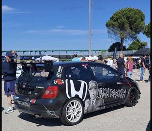 Vettura targata , motore k20a2 , turbina borgwarner , cambio con ingranaggi PPG , autobloccante , elettronica AEM , rollbar , impianto di estinzione , impianto nourice esterno con doppia pompa ,impianto frenante maggiorato , sedili sparco in carbonio , pompa acqua elettrica , radiatore acqua maggiorato , radiatore olio esterno , intercooler, Dashboard AIM ,ecc ecc la lista è veramente infinita ,la vettura è pronto all'uso NON ADATTA ai principianti per favore NO PERDITEMPO .