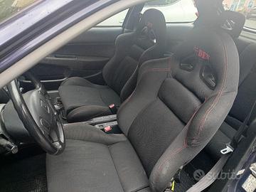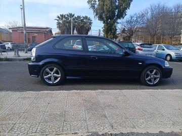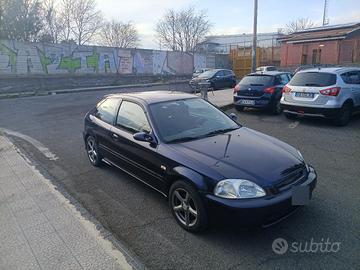 Honda Civic VTi 1.6 (EK4), motore B16A2, 160 cv, Vtec, dohc, Km 125.500, immatricolata a gennaio 1996, ha già compiuto 30 anni e quindi gode di passaggio di proprietà e assicurazione ridotti ed esenzione della tassa di proprietà (bollo). Non è iscritta all'ASI, la vernice è stata rinfrescata tutta 2 anni fa con il suo colore originale PB-74B, Dark Amethyst Pearl un colore micalizzato di quegli anni, raro, che è blu scuro ma con la luce del giorno è sul violetto, scarico completo tutto in acciaio inox marca SRS g35, non si ossida nel tempo, suono molto accattivante con eventuale silenziatore applicabile. Ammortizzatori, semirigidi, assetto sportivo, ma buono il comfort e la tenuta di strada, aspirazione sportiva a cono, radiatore maggiorato, fari Xenon, barra duomi, cerchi in lega, copertoni nuovi con circa 300 km, interni colore tipo D Black, sedili anteriori avvolgenti e posteriori tuning, neri con cuciture rosse. Elegante e sportiva contemporaneamente, l'auto va molto bene, ha una guida divertente e quando passa si fa notare per il colore, la linea e il rombo. Non consuma olio, si accende a primo colpo, la temperatura dell'acqua anche sotto sforzo resta bassa, raggiunge 1/3 dell'indicatore, indice di un ottimo stato del motore e del sistema di raffreddamento. Ha consumi bassi per merito del Vtec e costi di manutenzione bassi. La targa è originale italiana come la provenienza. È stata sostituita la cinghia di distribuzione, ammortizzatori, tiranti, braccetti, olio motore, filtri aria e olio, candele, batteria nuova, la meccanica è perfetta. Gli interni, il cielo, il cruscotto, i tappetini, sono in buone condizioni, il cambio è fluido e gli innesti delle marce perfetti. L'auto non ha costi di tasse e lavori da effettuare ed è destinata ad acquistare valore con il tempo, sarebbe quindi anche un buon investimento