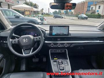 automatico velocità - Controllo elettronico della stabilità del traino TSA - Controllo elettronico della trazione - Correttore assetto fari - Cruise Control Adattivo ACC - Display multifunzione 10,2" - Dispositivo di chiamata d'emergenza eCall europeo - Drive Mode (Econ/Normal/Snow/Sport) - Emblema e:HEV - Fari Led - Fari Led con abbaglianti adattivi ADB - Fendinebbia - Finitura parte bassa paraurti ant e post , lat. nera - Freno di stazionamento elettrico con funzione aut Brake Hold - Funzione chiusura finestrini e specchietti da radiocomando - Funzione specchietto di retromarcia - Ganci di fissaggio nel bagagliaio - Head Up Display - Honda Connect 9" Carplay/Android - Honda Connect 9" Carplay/Android con Navi - IIluminazione maniglie, pannello portiere e consolle - Immobilizer - Indicatore temperatura esterna - Informazioni angolo cieco (BSI) - Informazioni angolo cieco (BSI) e traffico in manovra CTM - Interni in ecopelle/pelle neri - Kit di riparazione pneumatici IMS - Limitatore di velocità intelligente ISL - Limitatore di velocità regolabile - Luce abitacolo, cortesia, lettura, bagagliaio - Luci abitacolo anteriori zona piedi - Luci attive di svolta ACL - Luci di svolta anteriori sequenziali a LED - Luci diurne anteriori a LED - Luci posteriori a LED - Mancorrenti - Maniglie porte in tinta con la carrozzeria - Mascherina ant