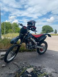 vendo honda crf 250 r con 70 ore totali, utilizzata solo in strada no pista e taglindata ogni 10 ore, omologati cerchi da 17 a libretto tramite italparts, gomme nuove, monta il suo doppio terminale versione racing di leovince con omologazione e collettore in titanio fatto su misura con powerbomb, assieme alla moto do anche uno scarico singolo della dep in titanio con cerchi da 18/19(tassellate all’80%)