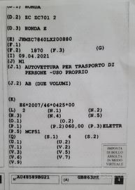 - HONDA E 60 KW ELETTRICA ANNO 2020 CON 42000 KM CERTIFICATI ED UNICO PROPRIETARIO..AUTO ADATTA AI NEOPATENTATI..MOLTO BELLA E PERFETTA..FULL OPTIONALS..CON CAVO DI RICARICA DA CASA e CAVO MODO 2 PER COLONNINA .