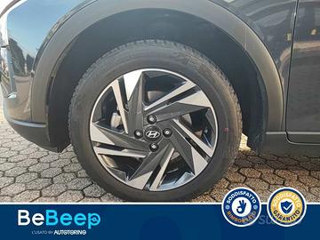 2 Airbag a tendina, 2 Airbag laterali, 5 Anni Di Garanzia / Km Illimitati, A.B.S., Airbag anteriore conducente, Airbag anteriore passeggero, Altoparlanti anteriori e posteriori, Alzacristalli elettrici anteriori e posteriori, Antifurto Con Radiocomando A Distanza E Immobilizer, Barre Longitudinali, Bluetooth con riconoscimento vocale, Caricatore wireless per smartphone, Cerchi in lega da 16"" con pneumatici 195/55 R16, Climatizzatore Manuale, Cluster Supervision da 10.25"", Comandi audio al volante, Cruise Control, Ecall, Freni anteriori e posteriori a disco, Griglia anteriore Glossy Black, Hill Assist Control (H.A.C.), Hyundai Smart Sense, Indicatori Di Direzione Integrati Negli Specchietti, Kit Gonfiaggio Pneumatici, Luci ambiente, Luci diurne