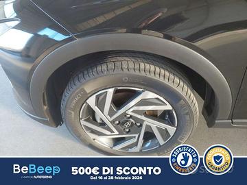La vettura è completa nella dotazione optional di 2 Airbag a tendina, 2 Airbag anteriori, 2 Airbag laterali, A.B.S., Aggiornamenti del sistema multimediale e mappe del navigatore tramite rete wireless (OTA) per 6, Altoparlanti anteriori e posteriori, Alzacristalli Elettrici Posteriori, Alzacristalli elettrici anteriori con funzione Up & Down Safety per guidatore, Antifurto Con Radiocomando A Distanza E Immobilizer, Barre Longitudinali, Bluetooth con riconoscimento vocale, Cerchi in lega da 16"" con pneumatici 195/55 R16, Climatizzatore Manuale, Cluster supervision da 10.25"" TFT LCD, Comandi audio al volante, Cruise Control, E-Call, E.S.C., Fari anteriori Full Led, Freni a disco anteriori e posteriori, GARANZIA 5 ANNI / KM ILLIMITATI, Griglia anteriore Glossy Black, Hyundai Smart Sense,