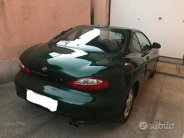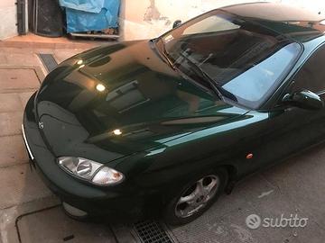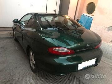 Hyundai Coupe 1.6 FX (prima serie) del 1997, 105 CV, verde metallizzato. Full optionals (ABS, aria condizionata, vetri elettrici, specchietti elettrici, cerchi in lega, fendi e retro nebbia); Completamente Originale, ottime condizioni generali. Mai incidentata. Volendo è pronta per iscrizione al registro storico (no bollo e assicurazione ridotta) Di proprietà da sempre, praticamente guidata solo da unica persona per pochi km al giorno. Vendo solo perché la proprietaria non guida più e dispiace tenerla ferma. Eseguiti sempre tutti gli interventi di manutenzione ordinaria e straordinaria tra cui: ammortizzatori, batteria, alternatore, cinghie , distribuzione, freni, cambio e frizione, monta attualmente le gomme 4 stagioni (così da non dover fare il cambio estate/inverno). Interni originali come nuovi (posti dietro mai utilizzati). Monta impianto audio Clarion completo con caricatore multi cd nel baule (installato da subito all'epoca per diversi milioni di lire). Bollo pagato fino a sett. 2025, revisione fatta da poco (dicembre 2024). Auto di sicura rivalutazione storica e sempre più rara in queste condizioni assolutamente coeve.