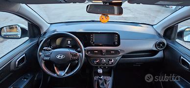 Hyundai I 10 anno 10/2023 more 1.0 benzina km 43000 colore bianco 5 porte cerchi in lega luci diurne led sensori posteriori di parcheggio fendinebbia clima due porte Usb volante multifunzione in pelle line assist correttore assetto fari radar anticollisione con frenata assistita AUTO PARI AL NUOVO TAGLIANDO OLIO E FILTRI PRIMA DELLA CONSEGNA GARANZIA 12 MESI POSSIBILITA DI FINANZIAMENTO IN SEDE