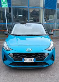 Hyundai i10 1.0 a benzina immatricolata nel 2022, nella ricercata versione bicolore nero e acqua turchese (con optional del valore di € 1.500).