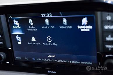 Sistema di infotainment con display touchscreen da 8" con Apple CarPlay e Android Auto.