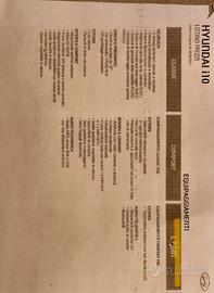 Vendo Hyundai I10 Login benzina (vedere foto per accessori) immatricolata Maggio 2017 con 102.000 km con regolare manutenzione (1 anno o 15.000 km) completa di relative fatture officina per eventuale visione a prova dei km dichiarati. Ultimo tagliando effettuato fine gennaio a 98.000 km. Ideale per neopatentati. Auto in ottimo stato con interni in tessuto, connessione bluetooth e regolatore di velocità.