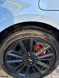 Riverniciata totalmente nel colore esclusivo N performance blue, con tetto nero, cerchi neri, minigonne e pinze freno rosse.