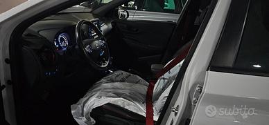 ACCESSORI: Cerchi in lega diamantati disegno specifico racing, Appoggiatesta anteriori e posteriori (tre) regolabili, Cinture di sicurezza anteriori (regolabili in altezza, a pretensione pirotecnica) e posteriori a tre punti di ancoraggio con limitatore di sforzo, Fissaggi ISOFIX per seggiolino bambini, Freno di stazionamento elettrico e Hill Assist, Servosterzo ad assistenza variabile, Accensione automatica delle luci di emergenza in caso di forte decellerazione, Sicurezza bambini meccanica, Airbag frontali conducente e passeggero, airbag a tendina anteriori e posteriori, Indicatore perdita pressione pneumatici, ABS, REF e AFU, avviso di corsia, lane assist, sensore anticollisione, Cruise Control e limitatore di velocità a soglie programmabili, Alzacristalli anteriori e posteriori elettrici sequenziali e antipizzicamento, Time Drive Control, Cassetto portaoggetti illuminato, Consolle centrale con due portabicchieri, Coprivano bagagliaio, Tasche sul retro dei sedili anteriori, Tergicristallo anteriore con sistema di pulizia "Magic Wash", Attivazione automatica del tergicristallo posteriore in retromarcia, Climatizzatore automatico bi-zona, Chiusura centralizzata porte con telecomando (due) e chiusura automatica delle porte in marcia, INGRESSO KEYLESS, Sensori parcheggio posteriori, anteriori e laterali, Fari diurni anteriori e posteriori FULL LED 3D con firma luminosa dinamica C-SHAPE, Fari Fendinebbia con profili cromati, 3D Connected Navigation con HYUNDAI Connect SOS & Assistance (con MirrosScreen) Radio DAB (Car Play, Android Auto, Mirror Link )- Digital Audio Broadcasting, retrocamera posteriore posteriore con macchina fotografica libera di retrovisione che supporta la visione notturna utilizzando una serie di luci a infrarossi per il backup al buio, vetri privacy oscurati, Volante regolabile in altezza e profondità, Decori interni in Cromo Satinato,