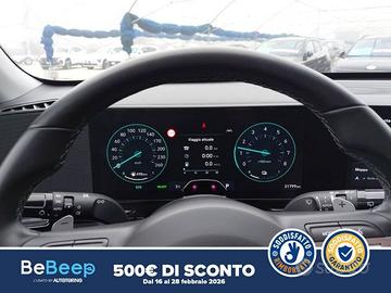 La vettura è completa nella dotazione optional di 2 Airbag a tendina, 2 Airbag anteriori, 2 Airbag laterali, 4 Usb-C presa e Presa ausiliaria 12V (plancia), 5 Anni Di Garanzia / Km Illimitati, 6 Speakers, Airbag centrale, Alzacristalli elettrici anteriori e posteriori con funzione safety (anteriori), Antifurto con immobilizer, Attacchi ISOFIX, Barre portatutto longitudinali, Bluetooth con riconoscimento vocale, Bracciolo anteriore, Caricatore wireless per smartphone, Cerchi in lega leggera da 18"" con pneumatici 215/55 R18, Climatizzatore automatico, Cluster Supervision da 12.3"" TFT LCD, Comandi audio al volante, Drive Mode Select, Freno di stazionamento elettrico, Highway Driving Assist (H.D.A.), Hyundai Smart Sense, In Cabin Camera (I.C.C), Indicatori di direzione a LED integrati negli