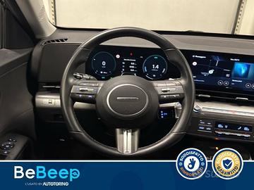 La vettura è completa nella dotazione optional di 2 Airbag a tendina, 2 Airbag anteriori, 2 Airbag laterali, 4 Usb-C presa e Presa ausiliaria 12V (plancia), 5 Anni Di Garanzia / Km Illimitati, 6 Speakers, Airbag centrale, Alzacristalli elettrici anteriori e posteriori con funzione safety (anteriori), Antifurto con immobilizer, Attacchi ISOFIX, Barre portatutto longitudinali, Bluetooth con riconoscimento vocale, Bracciolo anteriore, Caricatore wireless per smartphone, Cerchi in lega leggera da 18"" con pneumatici 215/55 R18, Climatizzatore automatico, Cluster Supervision da 12.3"" TFT LCD, Comandi audio al volante, Drive Mode Select, Freno di stazionamento elettrico, Highway Driving Assist (H.D.A.), Hyundai Smart Sense, In Cabin Camera (I.C.C), Indicatori di direzione a LED integrati negli specchietti, Kit Gonfiaggio Pneumatici,