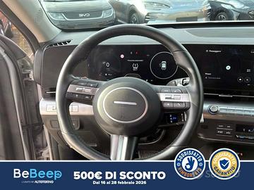 La vettura è completa nella dotazione optional di 2 Airbag a tendina, 2 Airbag anteriori, 2 Airbag laterali, 4 Usb-C presa e Presa ausiliaria 12V (plancia), 5 Anni Di Garanzia / Km Illimitati, 6 Speakers, Airbag centrale, Alzacristalli elettrici anteriori e posteriori con funzione safety (anteriori), Antifurto con immobilizer, Attacchi ISOFIX, Barre portatutto longitudinali, Bluetooth con riconoscimento vocale, Bracciolo anteriore, Caricatore wireless per smartphone, Cerchi in lega leggera da 18"" con pneumatici 215/55 R18, Climatizzatore automatico, Cluster Supervision da 12.3"" TFT LCD, Comandi audio al volante, Drive Mode Select, Freno di stazionamento elettrico, Highway Driving Assist (H.D.A.), Hyundai Smart Sense, In Cabin Camera (I.C.C), Indicatori di direzione a LED integrati negli