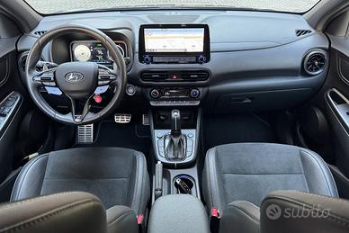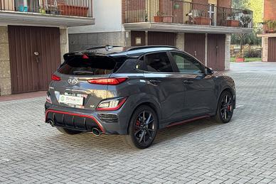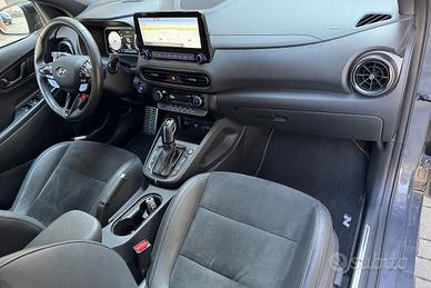 PERIZIA DELL'ESPERTO PRIVACAR: Stupenda Hyundai Kona N Performance presentata in uno stato impeccabile. Vettura secondo proprietario, il quale vende per cambio segmento. Riposta sempre in box e tenuta in maniera maniacale, svolto tagliando ufficiale in data 03/2025. Tra le dotazioni di spicco possiamo trovare: sensore luci, sensore pioggia, cruise control adattivo & limitatore di velocità, rilevamento punto cieco, lane assist, keyless, quadro strumenti digitale, drive select, palette cambio al volante, infotainment con CarPlay/Android Auto, climatizzatore automatico bi-zona, sedili anteriori riscaldabili e ventilati regolabili elettricamente, sedili posteriori riscaldabili, vetri privacy, sensori di parcheggio anteriori/posteriori, retrocamera, scarico sportivo con valvole, cerchi in lega forgiati da 19", ruotino di scorta e tante altre. Gomme 4stagioni in ottimo stato. Vettura coperta da GARANZIA CASA MADRE fino al 03/2028.