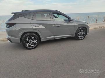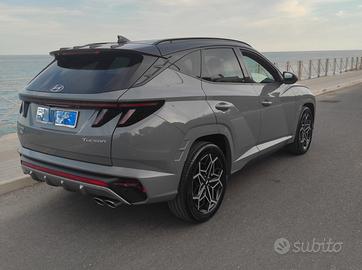 Vendo stupenda Hyundai Tucson, allestimento N Line (top di gamma sportivo senza batterie pesanti), motore 1.6 T-GDI Mild Hybrid 48V da 150cv con cambio manuale intelligente iMT (che permette la veleggiatura a motore spento per consumi ridotti). Divertente quando si ha voglia, top di comodità quando si vuole viaggiare tranquilli. Sedili sportivi N Line in tessuto grigio scuro con cuciture rosse. Kit estetico N Line (paraurti specifici, passaruota in tinta). Cerchi in lega N Line da 19". Fari Full LED. Display touch da 10.25" con Apple CarPlay/Android Auto. Cluster supervision da 10.25". Smart Key con start button. Garanzia ufficiale fino al 2027 (compreso) a km illimitati. Vettura tenuta maniacalmente, sempre garage, tagliandi ufficiali, con trattamento nanoceramico sia carrozzeria che cristalli. Gomme nuove montate da neanche 600 km (165 euro a pneumatico) con equilibratura e convergenza. Nessun lavoro da fare. Per qualsiasi info basta chiedere senza nessun problema. Prezzo leggermente trattabile.