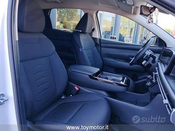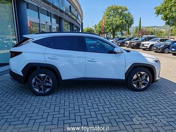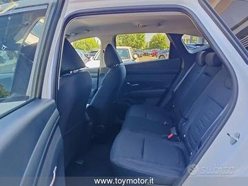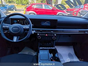 7 Airbag ( anteriori , laterali, a tendina e centrale) - ABS + EBD - Alzacristalli elettrici anteriori e posteriori con funzione Up & Down Safety - Antifurto con radiocomando a distanza e immobilizer - Appoggiatesta posteriori - Attacchi ISOFIX - Barre portatutto longitudinali - Bluetooth con riconoscimento vocale - Bracciolo anteriore con vano portaggetti - Cambio shift-by-wire - Caricatore wireless per smartphone - Cerchi in lega leggera da 18" con pneumatici 235/55 R18 - Climatizzatore automatico a due zone - Cluster Super Vision - Quadro strumenti TFT LCD ad alta definizione da 12.3" - Comandi audio al volante - Cruise control - Fari anteriori Full LED - Frenata automatica d'emergenza con riconoscim. veicoli, pedoni e cicli e funz. junction (F.C.A. 1.5) - Freno di stazionamento elettrico - Hyundai Smart Sense - Kit gonfiaggio pneumatici - Luci interne a LED - Maniglie esterne e specchietti retrovisori in tinta carrozzeria - Paddle al volante - Presa ausiliaria 12V (plancia) - Prese USB anteriori e posteriori - Pulsante di avviamento "Start Button" con Smart Key - Retrovisore interno elettrocromico - Sedile guidatore e passeggero regolabile in altezza e con supporto lombare elettrico - Sedile posteriori abbattibili con modulo 40:20:40 - Sedili rivestiti in tessuto - Sensore crepuscolare - Sensore pioggia - Sensori di parcheggio anteriori - Sensori di parcheggio posteriori e retrocamera - Servizi telematici Bluelink per 10 anni (Lite) - Servosterzo - Sistema di assistenza alla partenza in salita (H.A.C.) - Sistema di controllo della stabilità (E.S.P.) - Sistema di controllo della velocità in discesa (D.B.C.) - Sistema di navigaz. con display touch da 12.3" e connettività Apple Carplay/Android e aggiornamenti - Smart Cruise control - Specchietti retrovisori regolabili, ripiegabili e riscaldabili elettricamente - Trailer